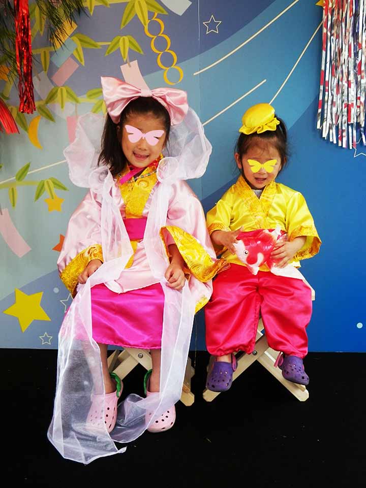 ハロウィンや七夕、消防士など、季節やテーマに合わせた衣装とブースで記念撮影。撮った写真はその場でプレゼントできます。