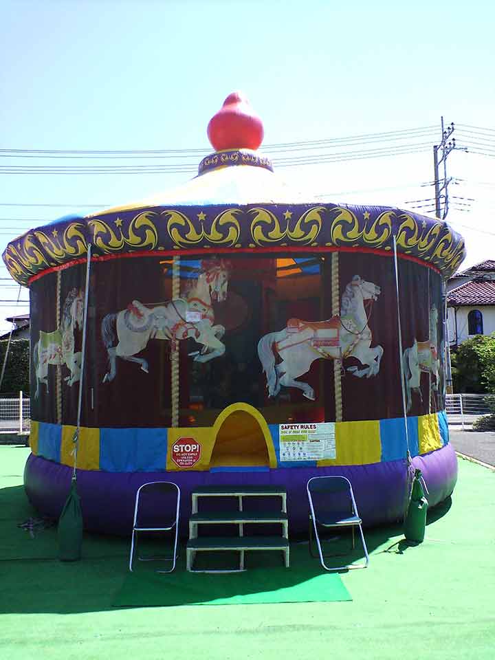 ふわふわやスライダーなどのエア遊具やメリーゴーランド、ミニSL、ゴーカートなどの乗り物もご用意しております。