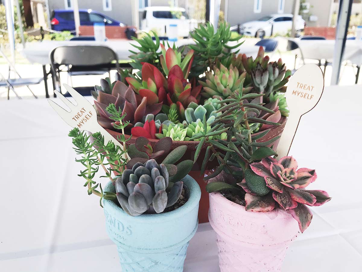 実施後にプレゼントとして配布可能な鉢植えを使ったものや、花びらとカラーサンドで描く繊細なものなど、オリジナルの下絵制作から対応致します。