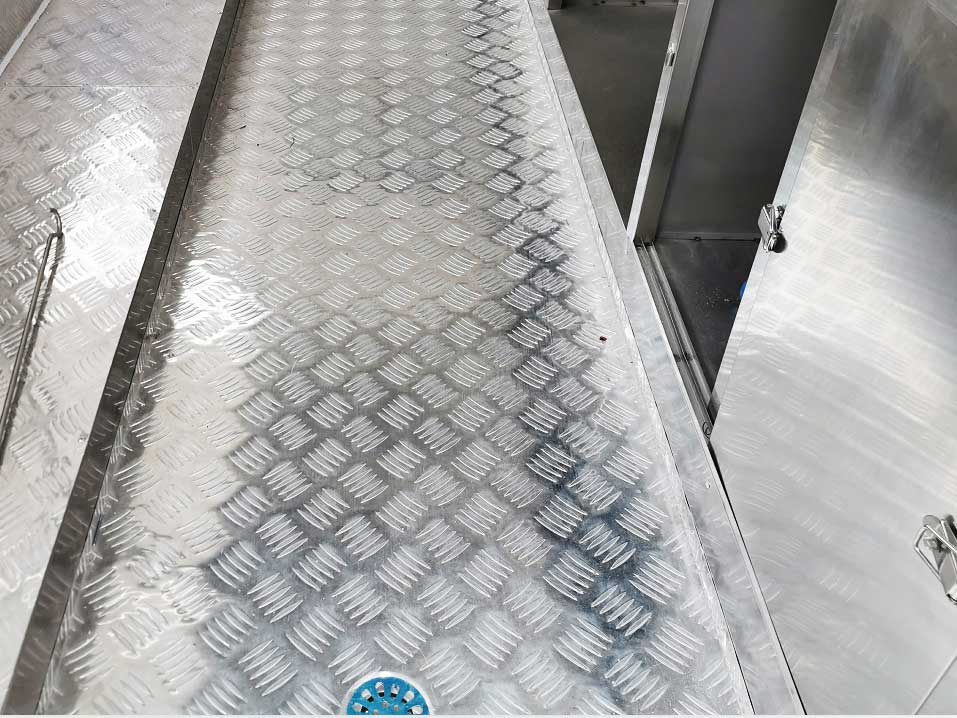 - トレーラーの床面はアルミニウム縞板張りで滑りにくくなっております。