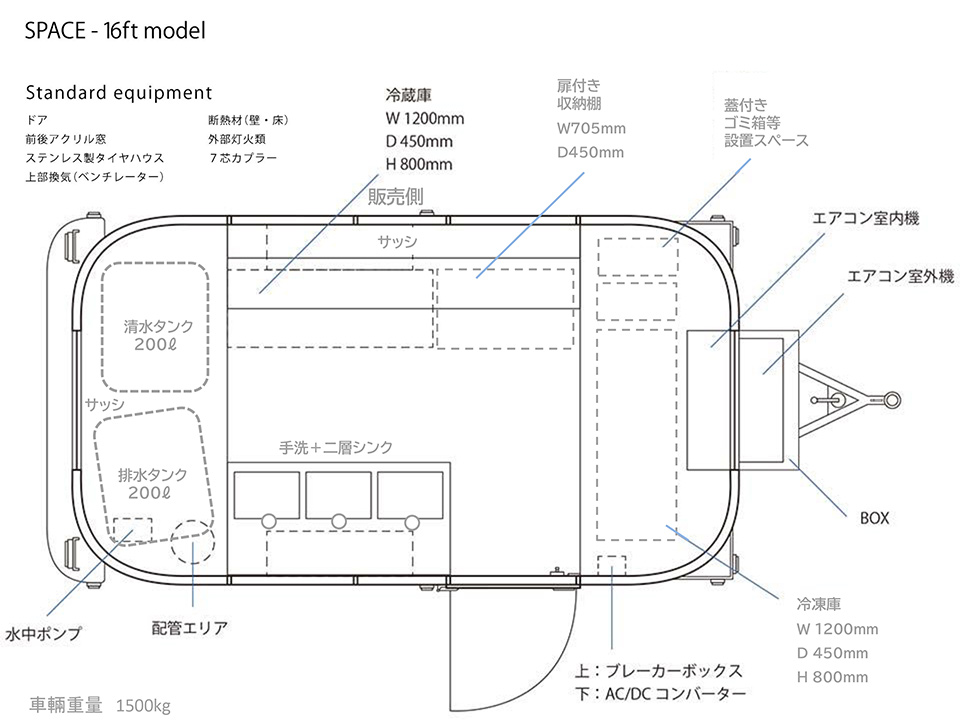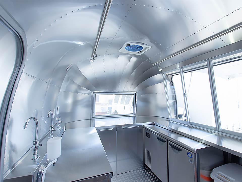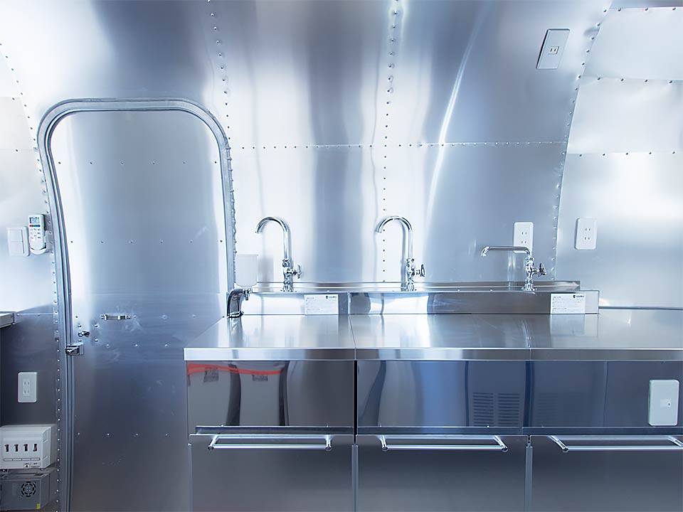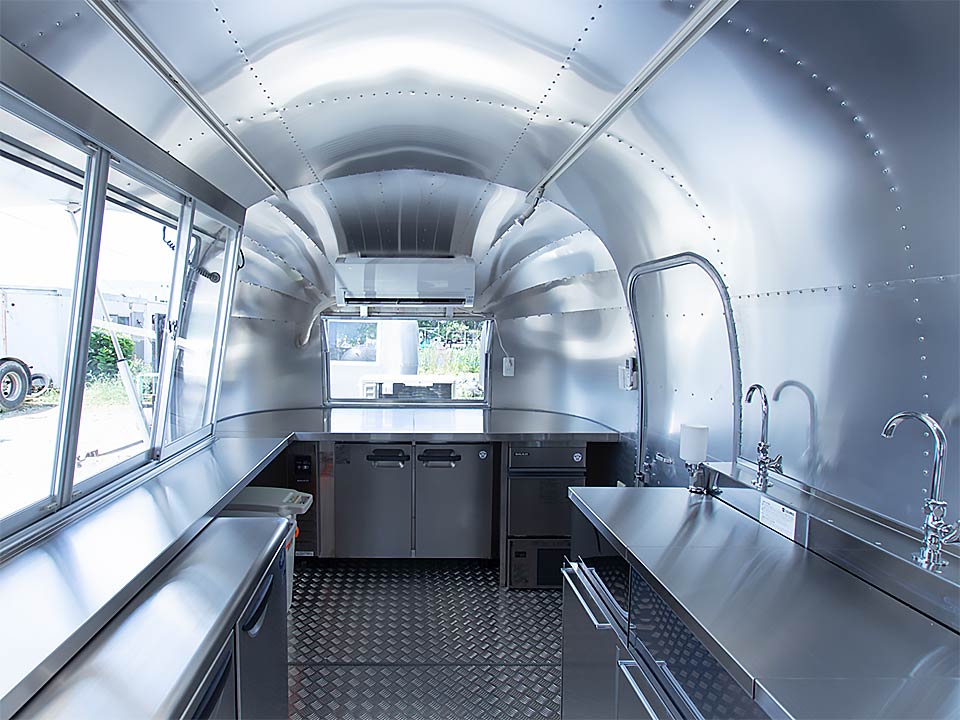 | 商品説明 | 牽引タイプのアメリカンなキッチントレーラー。イベント用に製造されており、用途に合わせて様々なカスタマイズが可能です。シルバーのアルミパネルで覆われた車体は、洗練されたシルエットを生み出し、街を走れば注目の的に。車体をラッピングすればなによりも目を引く移動広告として活躍します。 |
